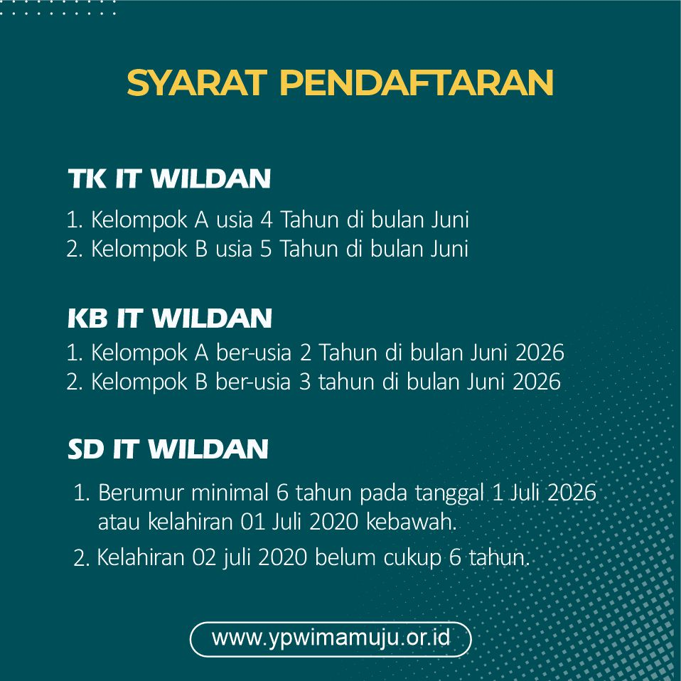 Syarat pendaftaran SPMB untuk tahun pelajaran 2026/2027 Sekolah Islam Terpadu Wildan Mamuju :